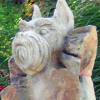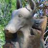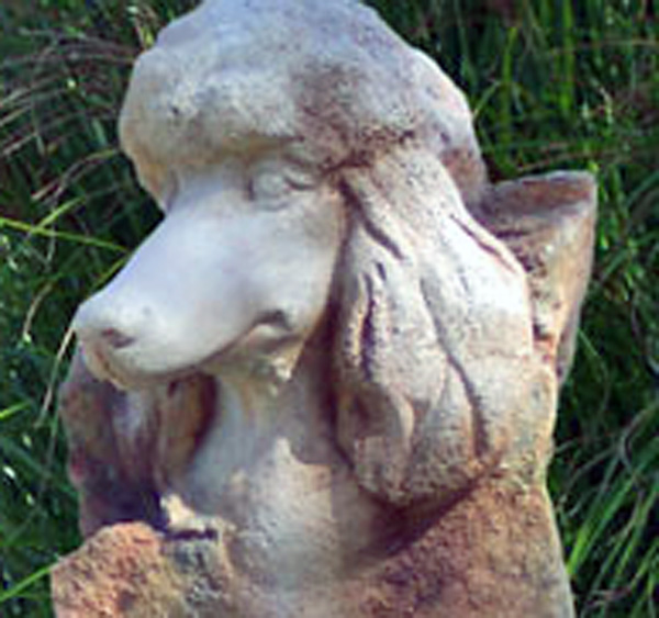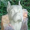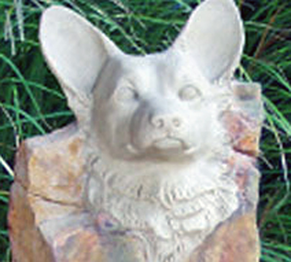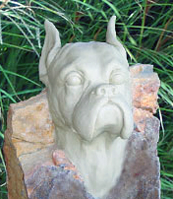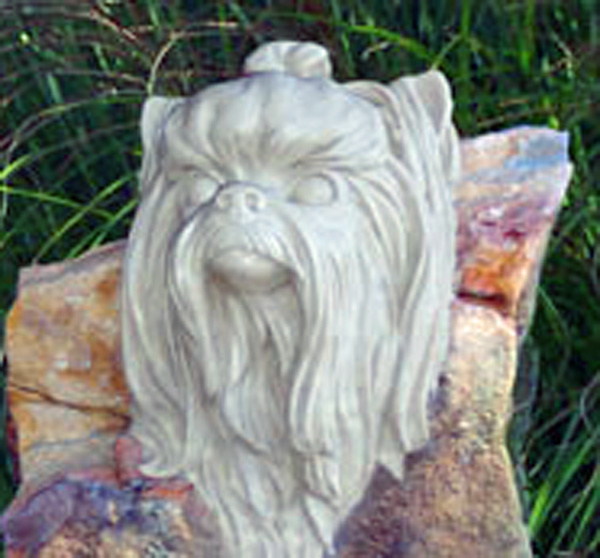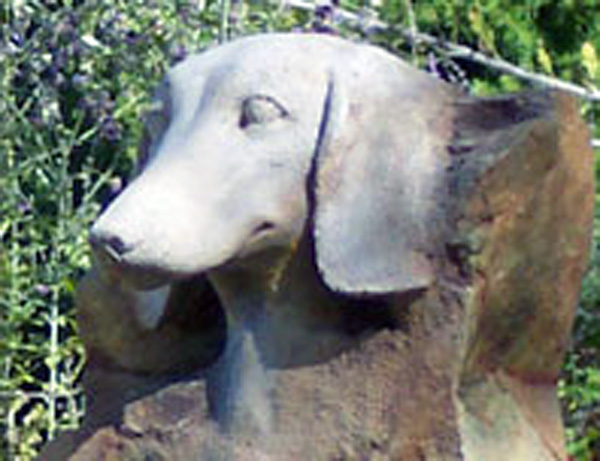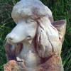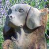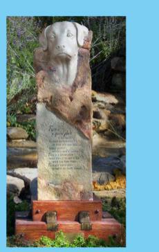 Styled in outdoor resin that looks just like the stone from which it was cast, these handsome and artfully sculpted statues stand on an Arts & Crafts style base, finished in a dramatic chestnut color--an exceptionally striking and uniqu memorial. Within the base there a compartment to place and protect the cremated remains of a beloved pet. Each comes with their own brass dog tag that can be personalized with the pets name or a thought. This attaches to the collar that is carved in the stone, or one could hang their pets' own tags to remember them by. The base will hold up to 500 CI.